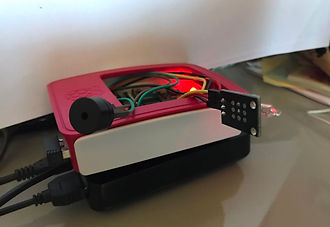 The Raspberry Pi plays a little musical ditty whenever you move it. To learn how to make this click the button>